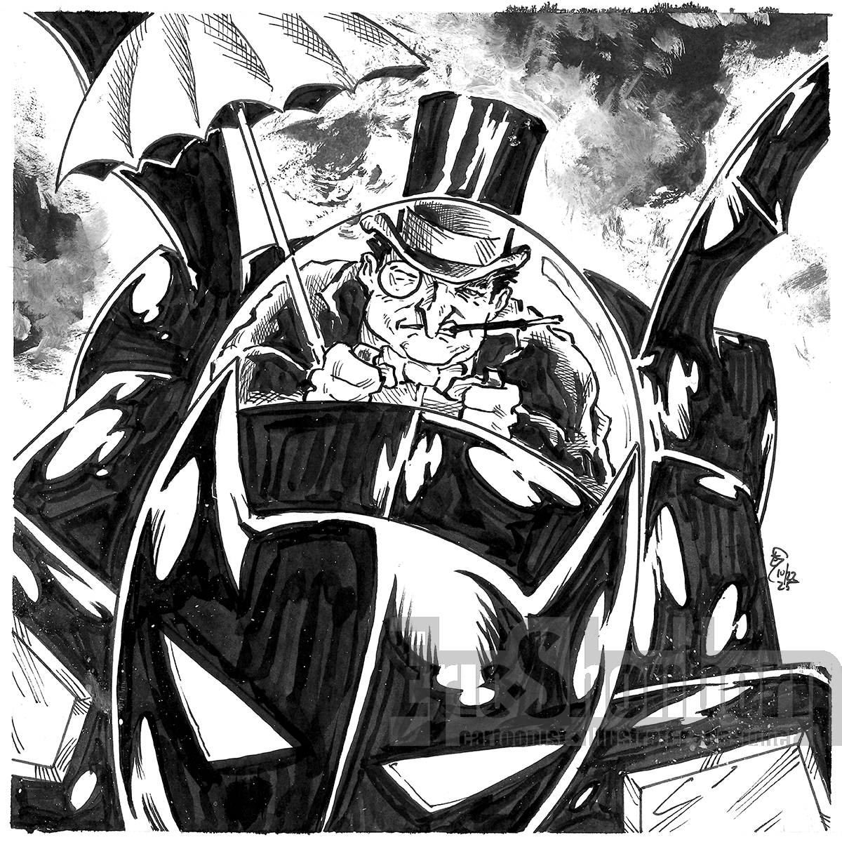 8 x 8 black and white, pen and ink illustration on 9 x 12 bristol board.
