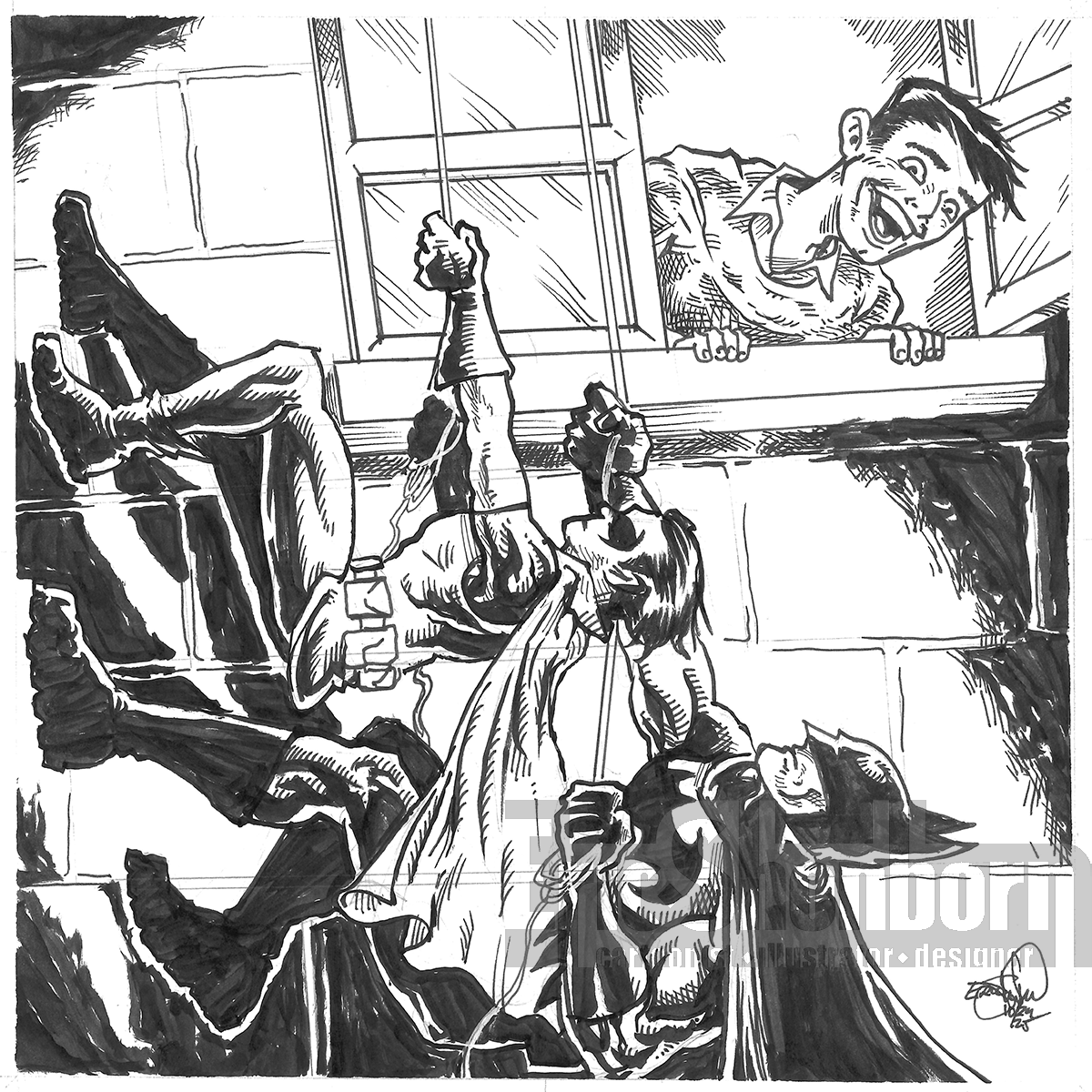 8 x 8 black and white, pen and ink illustration on 9 x 12 bristol board.
